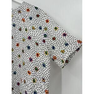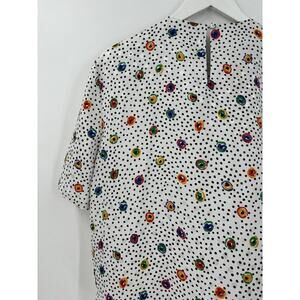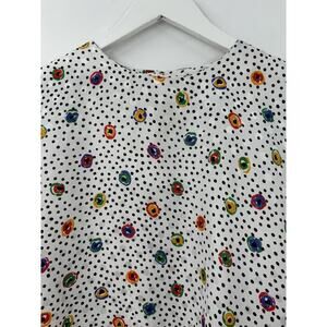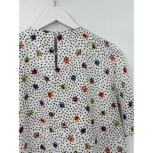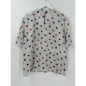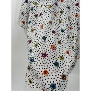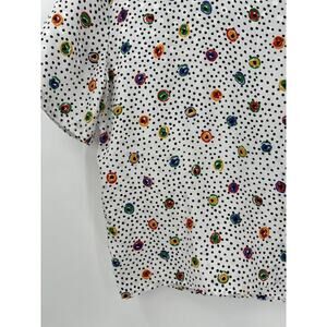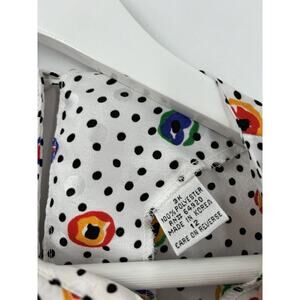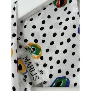 Marlis Vintage Blouse Womens 12 Large White Polka Dot Sheer Satin 80s Retro