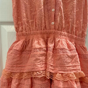 Marlo Girl’s Peach Ruffle and Lace Tiered Dress