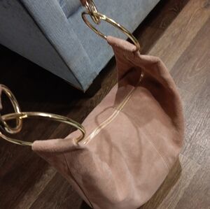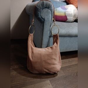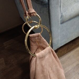 Marlon Made In Italy Suede Hobo Brown With Gold Ring Handle Matallic Silver