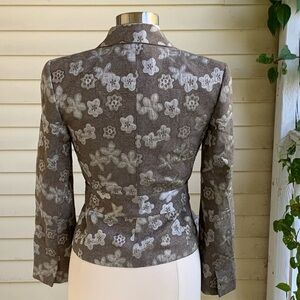 Marlowe Womens 40 (US 6) Blazer Jacket Brown Cream Embossed Floral Belted Italy