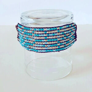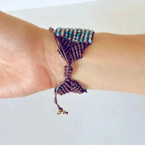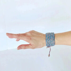 Marlyn Schiff Adjustable Blue and White Beaded Twine Bracelet