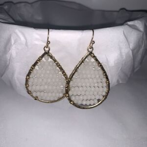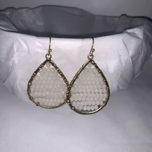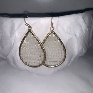 Marlyn Schiff Beaded White Crystal Earrings Tear Drop Dangle Gold Cream Wired