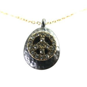 Marlyn Schiff Two Tone Gold Grey Hammered Peace Sign Pendant Chain Necklace