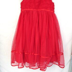 Marmellata Classics Girl's Red Rosette Party Dress with Tulle Overskirt Size 8