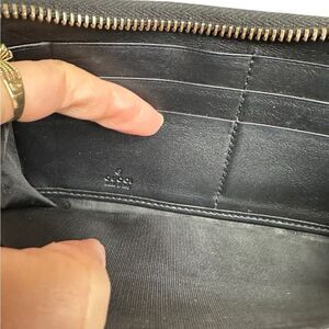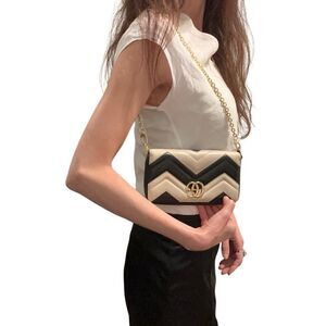 Elegant Gucci wallet in black and cream. Perfect for organizing essentials with style.