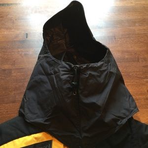 This is a rescue yellow and black Marmot Alpine Gortex. It is 2 ply and features vented breast panels for layered cooling in the move. It has a snow skirt on the interior with cinch cords. Hood is included and snaps in with a full shield over the collar. Deep front pockets hold tons of extras. This jacket is used but in great condition.