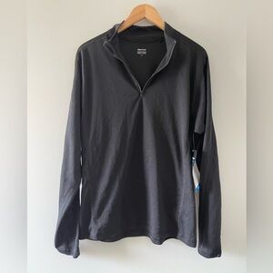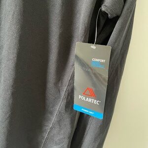 Comfortable black pullover featuring a quarter-zip design. Made with Polartec fabric for added warmth. This is super lightweight and sheer.