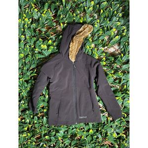 Marmot Black Zip-Up Soft Shell Jacket Faux Fur Hood Size Small