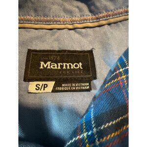Marmot Button Down Flannel Shirt Mens Size Small Plaid Blue Soft
