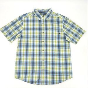Marmot Short Sleeve Green Blue Plaid Button Down Shirt