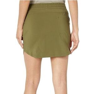 Stay cool and comfortable from trail to town in the Marmot Elda Skort. This breathable, stretchy skort features an elastic waist with an adjustable drawcord and a flattering curved hem. Keep essentials close with two front hand pockets and a secure back zip pocket. Made with recycled fibers for feel-good performance.