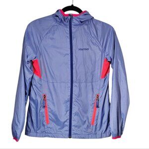 Marmot Ether Girls' Hooded Windbreaker Jacket Periwinkle Large