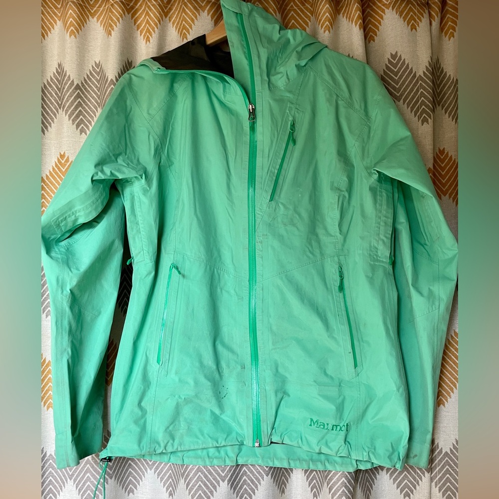 Teal Gortex she’ll/rain jacket from Marmot. Size Medium.
