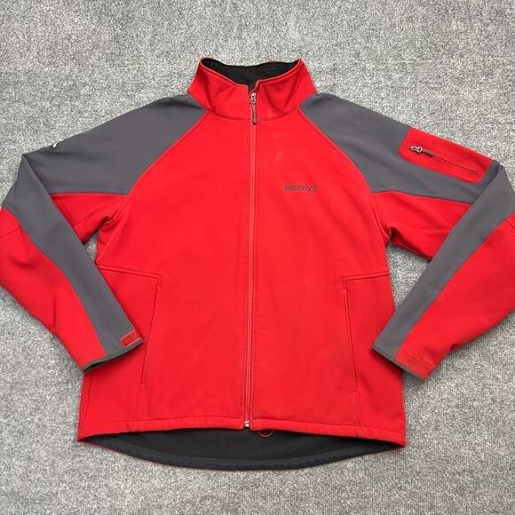 Marmot Gravity Softshell Jacket Men's XL Red Gray Fleece Lined Stretch Full Zip
