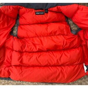Marmot Guides Goose Down 650 Fill Puffer Vest Men’s Full Zip Grey Orange Large