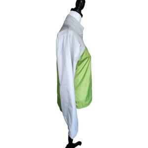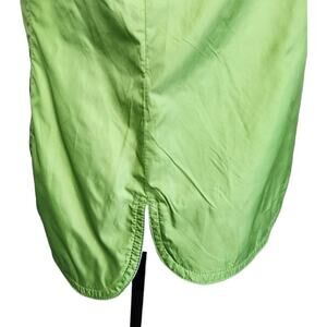 Lightweight fleece lined zip up lime green/light gray windbreaker jacket, hi/lo split hem, left chest hidden zippered pocket.