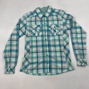 Marmot Long Sleeve Multicolor Plaid Button Up Shirt Pockets Sz S Roll Tab Sleeve