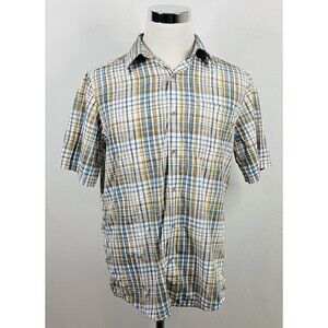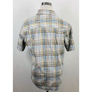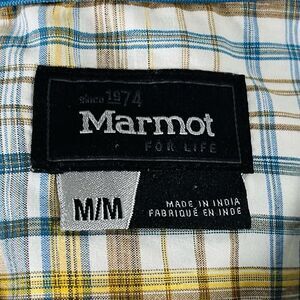 Marmot Medium Short Sleeve Outdoor Shirt Yellow Blue Plaid Nylon Poly Blend