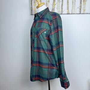 Size is medium. Colorway is called Mallard Green and features shades of green, blue, and red. In very good condition.