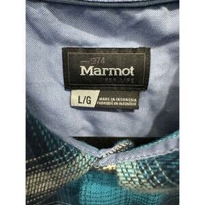 Marmot Men’s Blue Plaid Button Down Flannel Shirt Size Large Hiking Outdoor