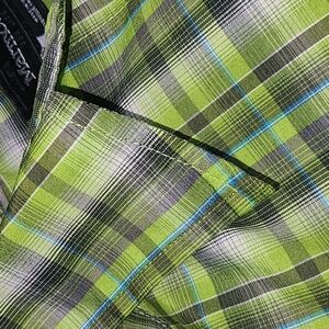 Stay stylish with the Volcom Men's Green Plaid Shirt. Perfect for casual outings, this shirt offers comfort and a trendy look.