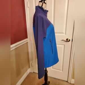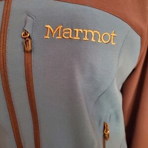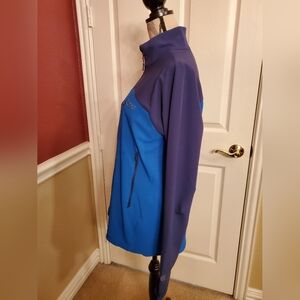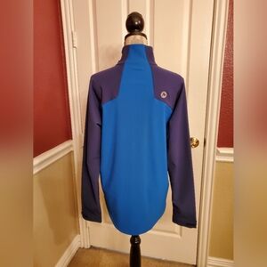 Marmot Men's Jacket in royal blue and navy. Size M. 3 outer and 1 inner zippered pockets.