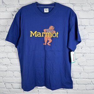 Marmot Men's Leaning Marty Cotton Blend Short Sleeve Tee Shirt, Size Large, Blue