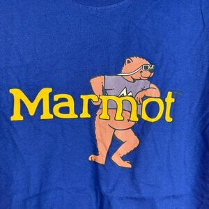 ~~ Have no fear, Marty the Marmot is here. An alpine-loving, summer thriving social butterfly that equally loves his downtime, the Marmot, like this soft comfy tee, is always ready for a good time. Whether you're going big on the mountain with friends or going home to hibernate after hard earned miles or elevation gains under the sun, you'll find yourself grabbing this soft polyester cotton blend tee to bring you much-needed comfort. Lightweight tee made with a breathable, wicking cotton blend, Regular fit, Unique Marmot graphic for rest-day vibes.