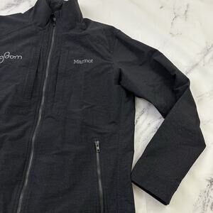 Marmot Mens Windbreaker Jacket Size L Black Gray Zip Up Lined Embroidered Logo
