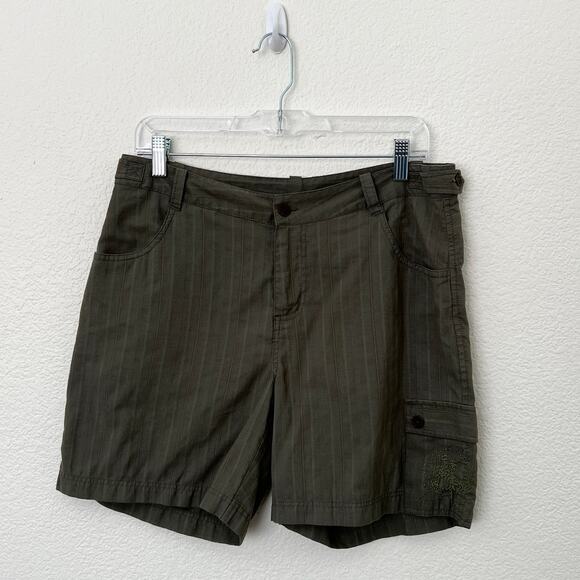 Marmot Size 8 Olive Green Striped Mid Rise Cargo Shorts Outdoor Hiking Cotton
