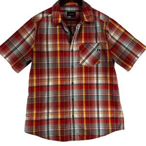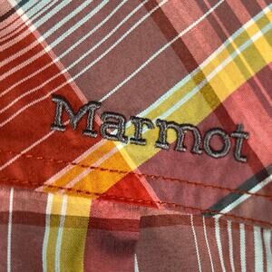 Marmot Plaid Gorpcore Plaid Shirt Men’s SZ M Orange Gray Yellow Red Pocket EUC