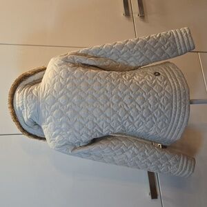 Marmot Quilted Faux Fur Collar Puffer Jacket Cream Size Small