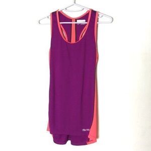 Marmot racerback tank top, peachy orange-pink & fuchsia purple, women’s size XS. In good condition, but no fiber/care tags.