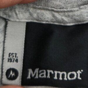 Crafted for the outdoor enthusiast, this Marmot men's T-shirt blends comfort with a touch of casual style. The shirt features a sleek gray hue complemented by the brand's iconic mountain logo, making it a versatile addition to any wardrobe. Its short sleeves and breathable cotton blend fabric ensure you stay cool whether you're hitting the trails or the beach.