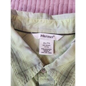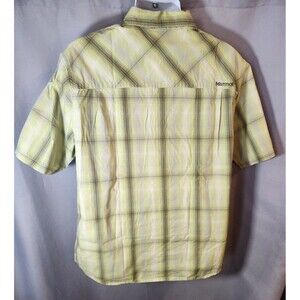 Marmot Shirt Mens Large Yellow Plaid Short Sleeve Button Up Organic Cotton XL