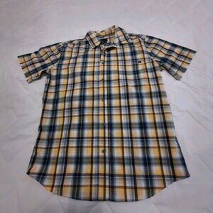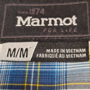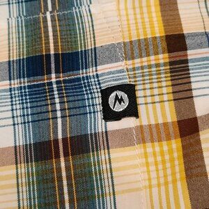 Marmot Short Sleeve Button Shirt Mens Medium Blue Yellow Plaid