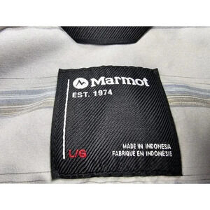 Marmot Size Large Men's Gray Blue Camel Trim Embroidered Back Logo Short Sleeve