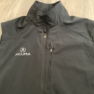 The Marmot Acura Vest for men in size XL is a stylish black full-zip soft shell with an embroidered logo, perfect for travel, casual, or workwear occasions. Made of polyester with a fleece fabric type, this vest features zipped pockets, full zip closure, stretch material, and a stand-up collar style. Ideal for winter, fall, and spring seasons, the vest is designed for outdoor activities like walking, skiing, and hiking. The personalized touch with the ACURA embroidery adds a luxury touch to this high-quality Marmot product. Marmot and Acura embroidered on front.