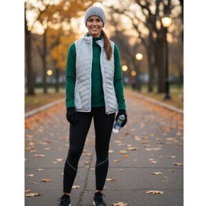Marmot Vest Size large Quilted Full Zip Gray White Pockets Outdoor