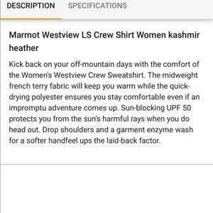 Marmot Women's Westview Crew Neck Sweatshirt Kashmir Heather NWT