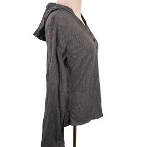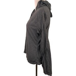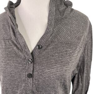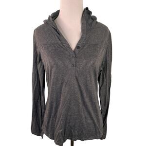 Marmot Women's Grey Striped Half Button Hooded Long Sleeve T-Shirt
