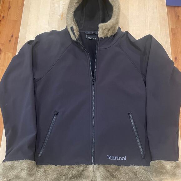 Marmot Women’s Large Black Faux Fur Long Sleeve Hooded Jacket