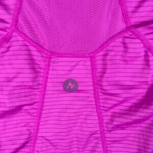 The item you are looking at is a pre-owned Marmot Women's Medium Purple Striped Polyester Elastane Short Sleeve Shirt