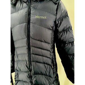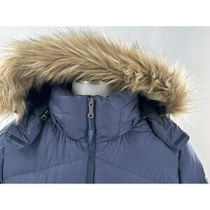 Marmot Women's Parka Fur Trimmed 700 Down Fill Jacket Coat Blue Medium