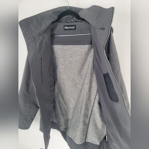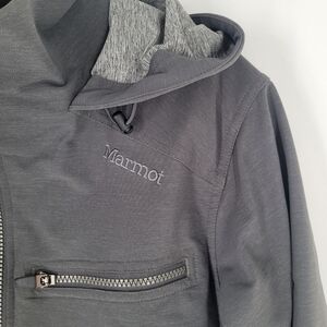 Marmot Women’s Soft Shell Hooded Jacket Gray Tech Pockets Windbreaker Size S