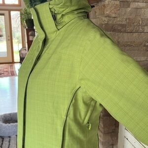 Marmot lime green winter jacket removable hood and snap waist zip close pockets