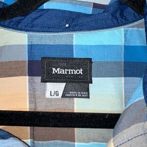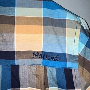 Marmot short sleeve green blue plaid button down shirt men’s size L