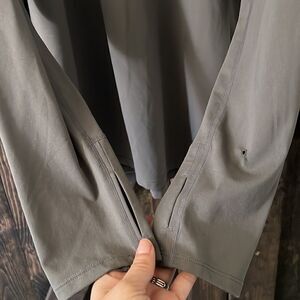 Only shows a hole tear on 1 sleeve and there a logo name on one sleeve other than that great condition rest didn’t use, love with sports in this quick-drying and moisture wicking Marmot Men's Harrier Half-Zip Pullover. Flat-locked seams thumb holes