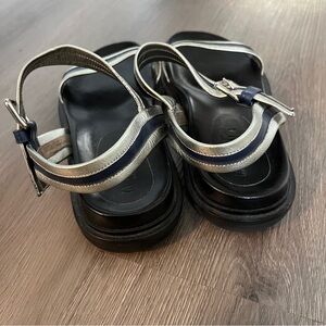 Marni | Summer Camp Fussbett Sandals | Silver/Blue Metallic Leather | Size 7.5
