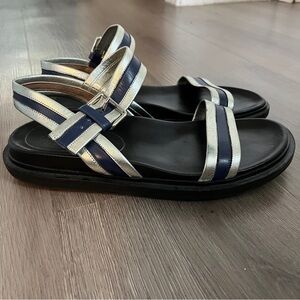 Tags: leather metallic summer strappy minimal designer upscale comfortable ergonomic cult classic Marni made in Italy buckles stripe
